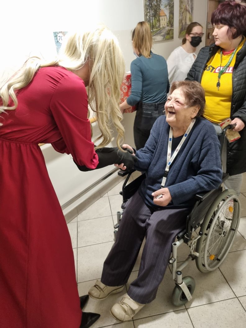 Ob kavi, čaju ter prigrizkih so si vsi prisotni ogledali še imitacijo Helene Blagne ter skupaj zapeli. Po zaključku dogodka so študentke razdelile praktična darila iz donacij, ki so bila namenjena prav vsaki enoti posebej. Njihovega obiska so bili veseli prav vsi stanovalci.